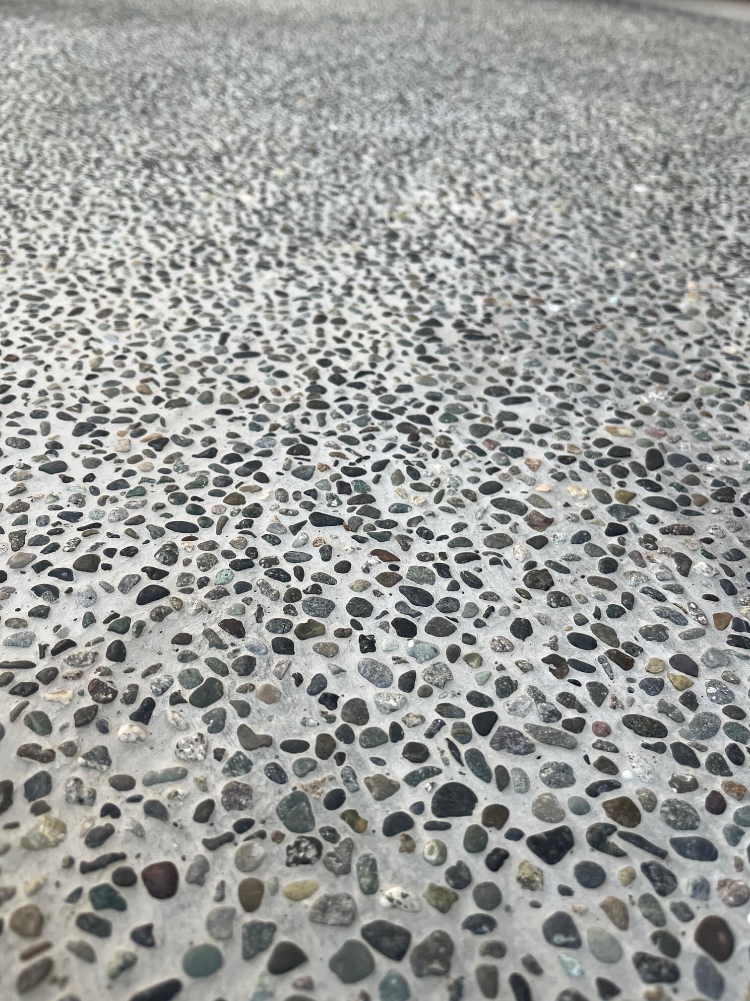 施工方法は、コンクリートの表面に砂利を埋め込み、乾く前に水で洗い流します。